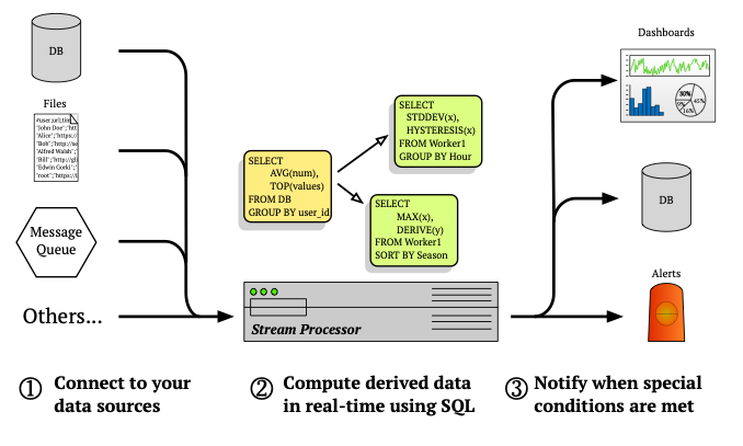 It allows to create any custom metric derived from the incoming data with the help of powerful statistical functions, and can then detect and alert on any condition on those custom metrics.